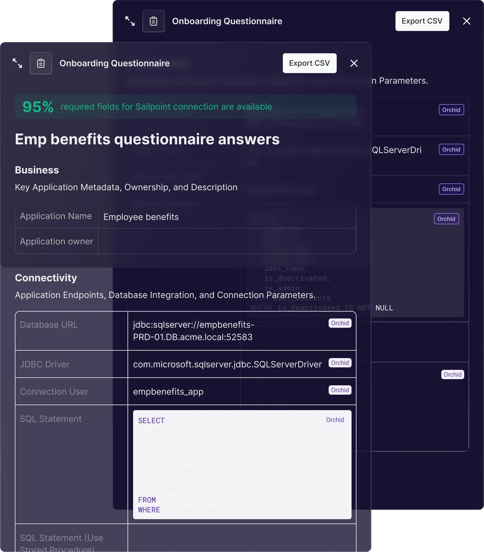 Orchid’s AI analyzes authentication and authorization logic inside each app. Identifying weak encryption, hardcoded credentials, and missing controls - mapping posture against frameworks like NIST, ISO, SOX, and GDPR.